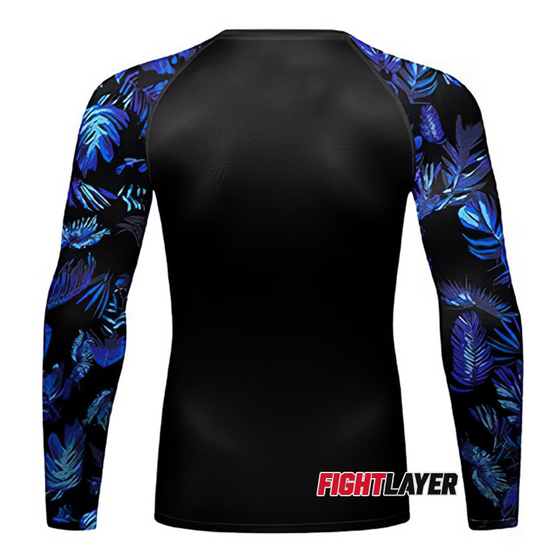 Unleash the power of the night jungle with this fierce rash guard that channels the mystery and intensity of tropical shadows. Designed to fuel your relentless drive, it fuses bold, electric blues with sleek black to create a look that dominates any workout arena. Engineered for those who thrive in the heat of battle, it blends seamless comfort, rapid moisture-wicking, and rugged durability to keep you sharp and unstoppable through every rep and sprint.